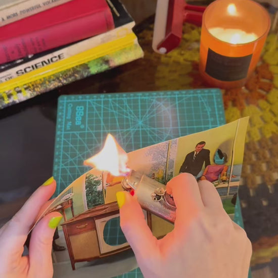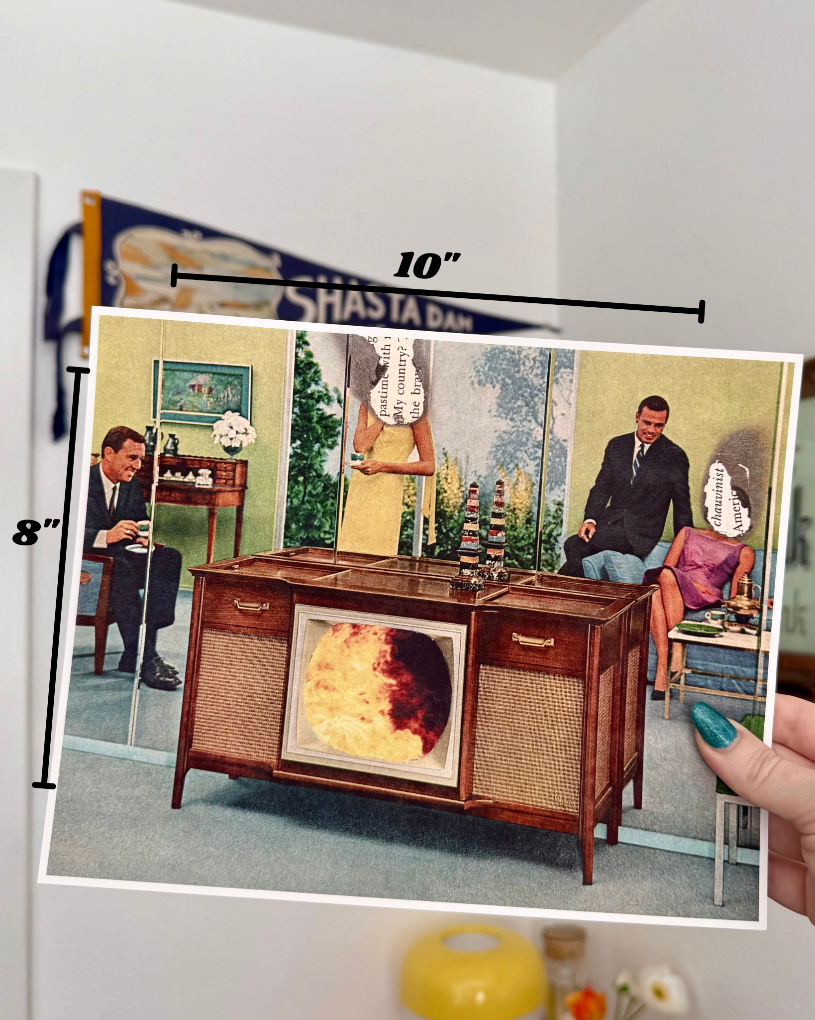 All collages are handmade, scanned, and printed by me. Scans are not digitally edited, so you may notice minor imperfections that are true to the vintage source material.