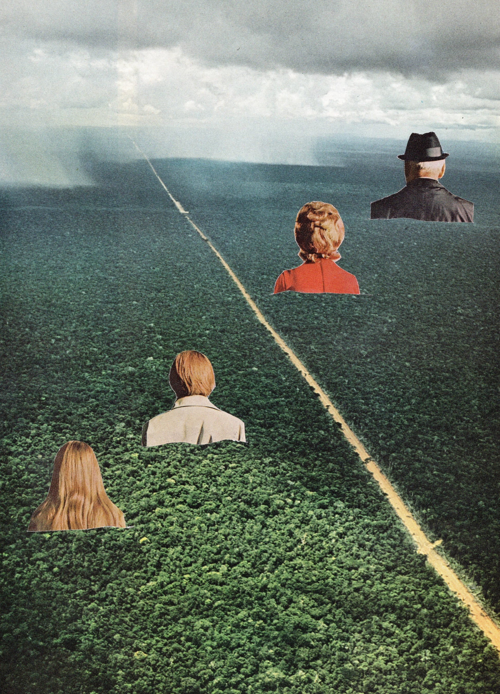 Art print of an original collage made with two pages from a 1972 National Geographic.